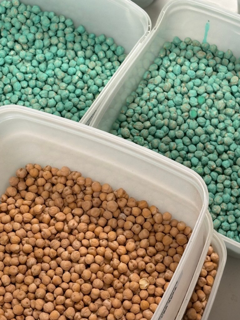 It was fascinating to learn about their alternative approach – candidate chickpea varieties were planted at two dates, around one month apart. Chickpeas in the earlier planting date served as a “control” treatment whilst chickpeas in the later planting date would be exposed to a greater number of high temperature days & nights later in the year, generating a “heat stress” treatment. These trials were being monitored via hyper-spectral drone measurements – this technology allows for the collection of multiple different plant traits at regular intervals throughout the growing season, highly efficient!