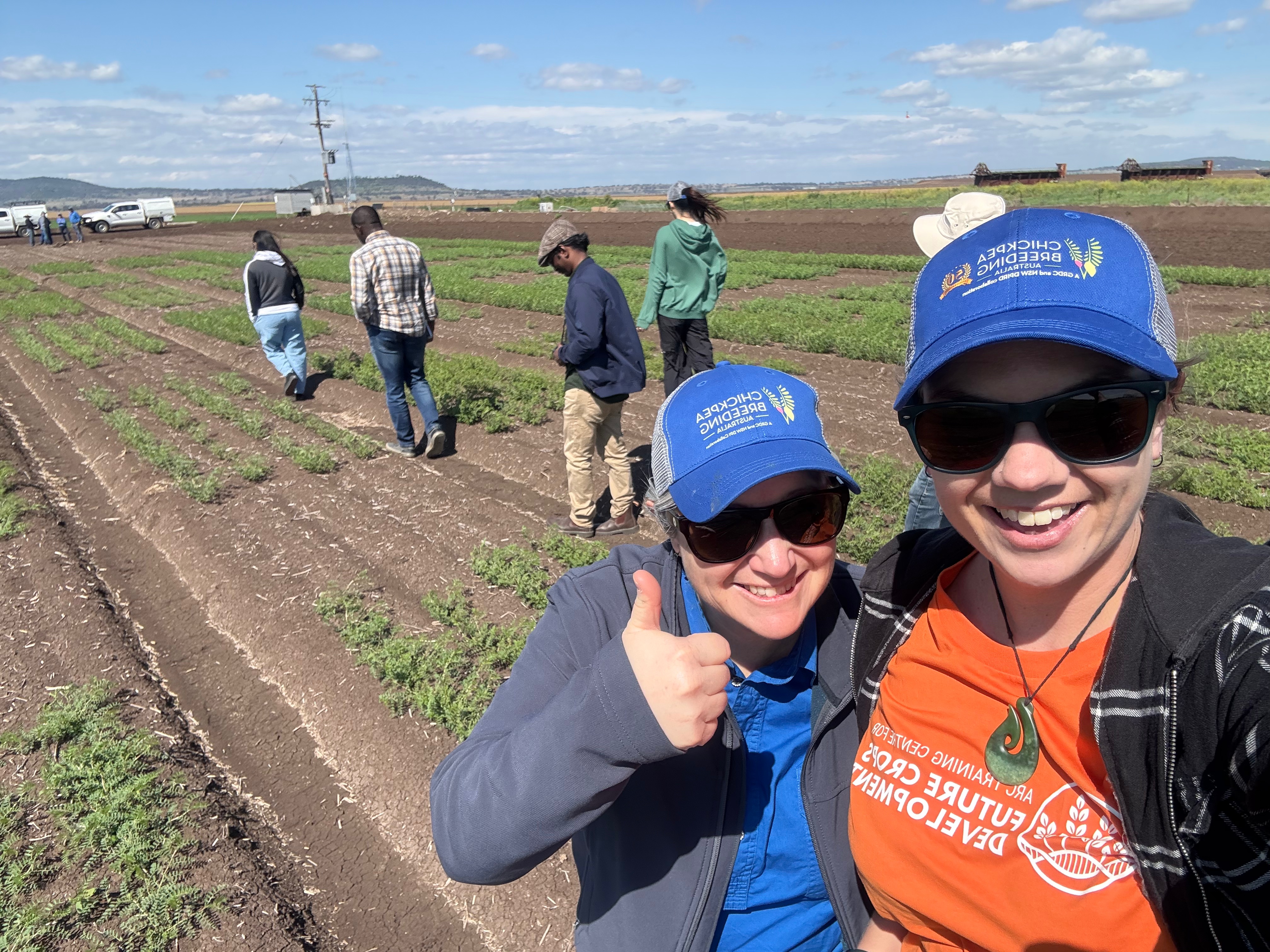 “It was super exciting to see these chickpea field trials and we learnt about how experiments which may be straightforward in a laboratory setting require some out-of-the-box approaches when undertaken at a field scale. Thanks to Kristy and everyone at Chickpea Breeding Australia.”